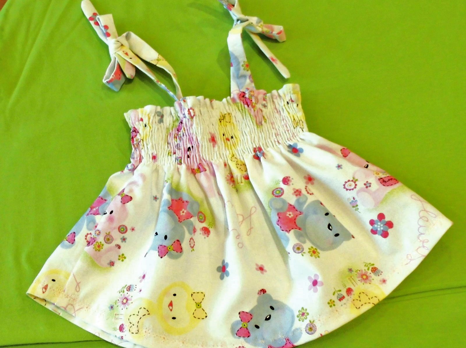 Das Trägerkleidchen wird mit zu Schleifen gebundenen Trägern verschlossen.
